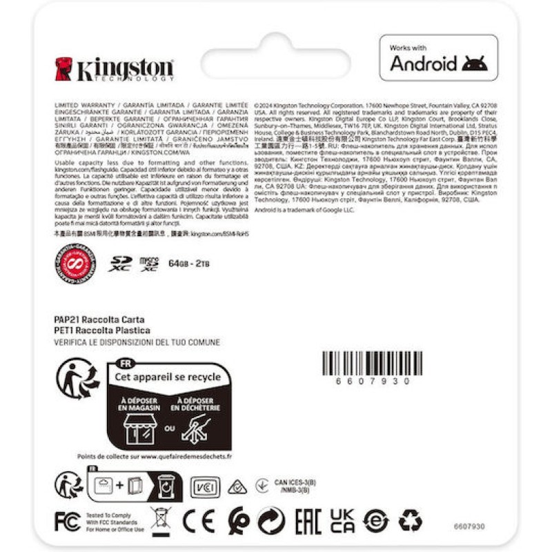 Kingston Canvas Select Plus microSDHC 64GB Class 10 U1 V10 A1 UHS-I με αντάπτορα