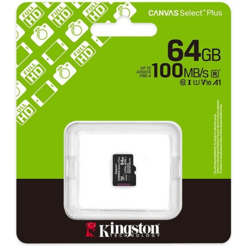 Kingston Canvas Select Plus microSDXC 64GB Class 10 U1 A1 με αντάπτορα