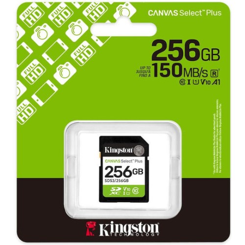 Kingston Technology 256GB SDXC Canvas Select Plus Gen3 150MB/s C10 UHS-I U1 V10 (SDS3/256GB)