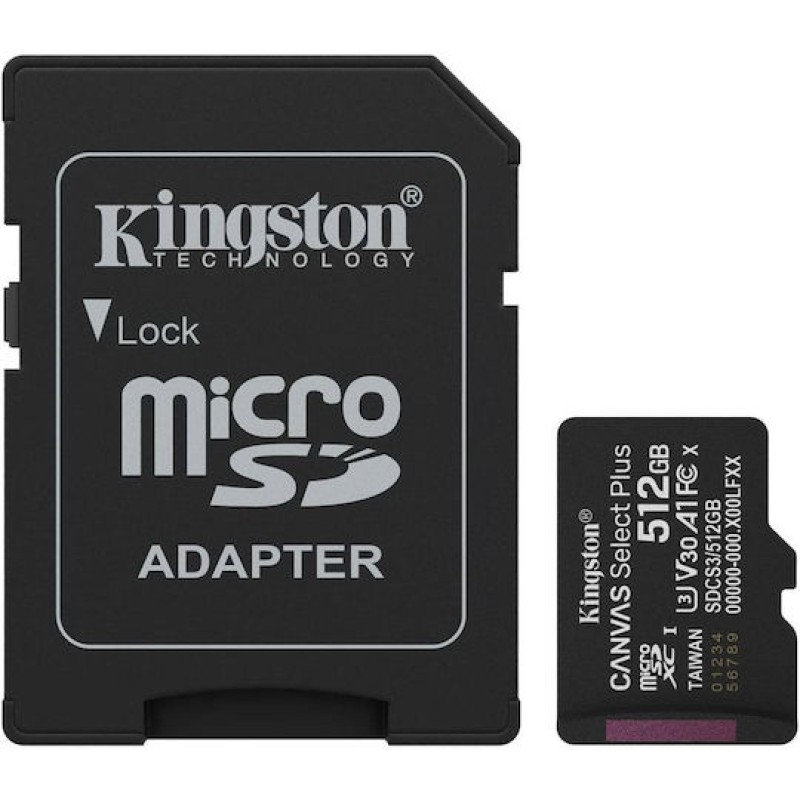 Kingston Technology 512GB microSDXC Canvas Select Plus Gen3 150MB/s A1 Card + Adapter (SDCS3/512GB)