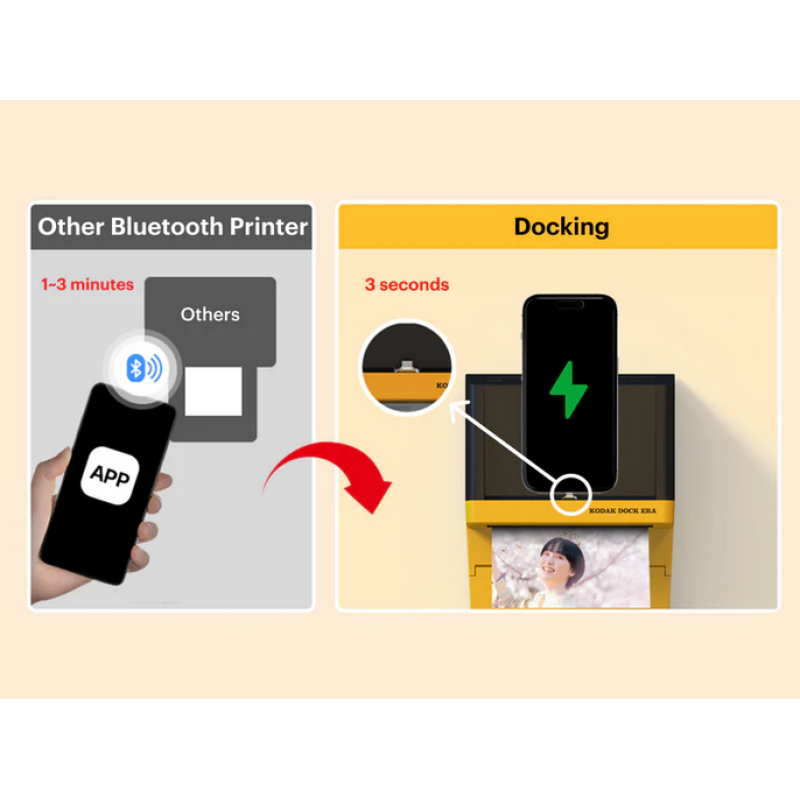 Τα προϊόντα που δεν αναγράφουν διαθέσιμο σημαίνει ότι δεν υπάρχουν άμεσα διαθέσιμα στο κατάστημα και θα παραληφθούν το αργότερο εντός των εργάσιμων ημερών που αναγράφεται στη διαθεσιμότητα. Σε κάθε περίπτωση η ημερομηνία μπορεί να μεταβληθεί και θα υπάρχει σχετική ενημέρωσή σας.Ο KODAK Dock Era Photo Printer D600 είναι ένας compact εκτυπωτής φωτογραφιών για οικιακή χρήση, σχεδιασμένος για άμεση εκτύπωση φωτογραφιών μεγέθους 10×15 cm (4×6"). Συνδέεται εύκολα με κινητά μέσω Bluetooth ή με φυσική σύνδεση (dock), επιτρέποντας γρήγορη εκτύπωση απευθείας από iOS ή Android συσκευές. Χρησιμοποιεί τεχνολογία 4PASS (dye sublimation), η οποία παράγει καθαρές, ζωντανές εικόνες και προσθέτει προστατευτική επίστρωση για μεγαλύτερη αντοχή στον χρόνο. Με απλή λειτουργία, μικρό μέγεθος και καλή ποιότητα εκτύπωσης, αποτελεί πρακτική λύση για καθημερινές φωτογραφίες και προσωπικές αναμνήσεις.