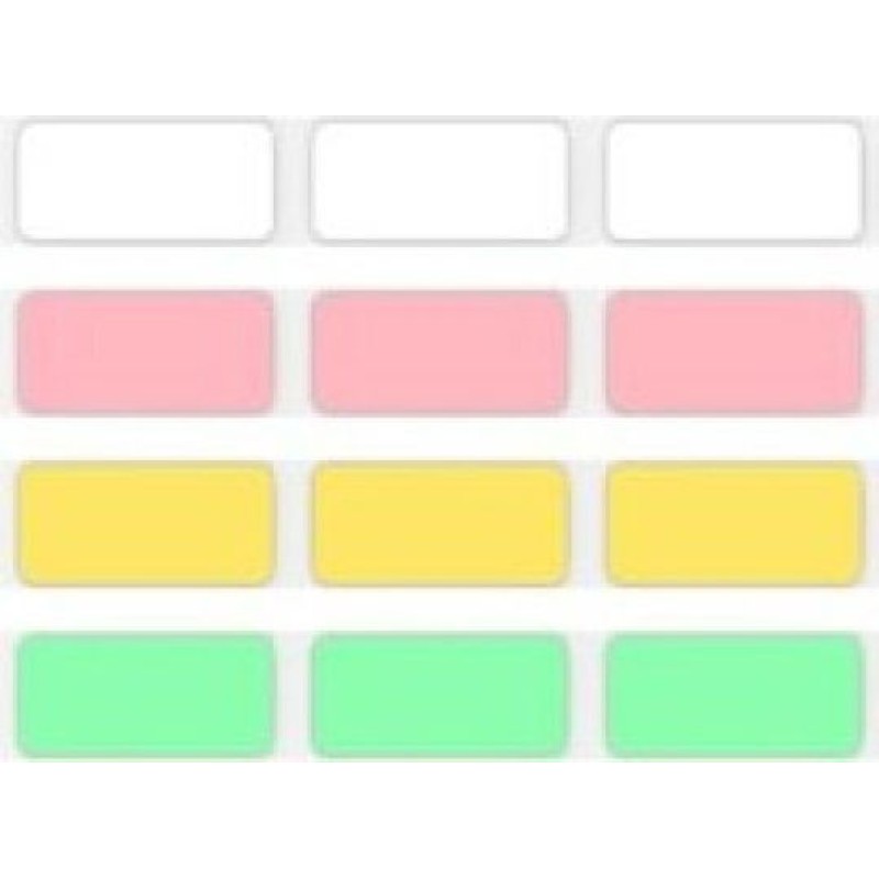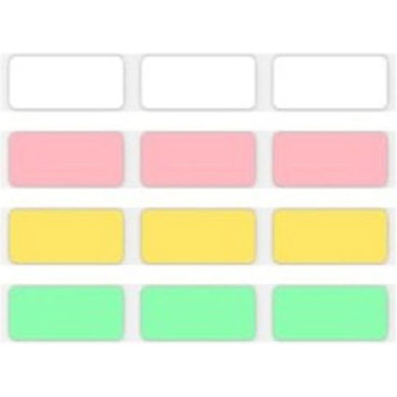 1 ροζ, 1 πράσινη, 1 κίτρινη (όλες προκομμένες 14×40 mm – 185 ετικέτες/ρολό)