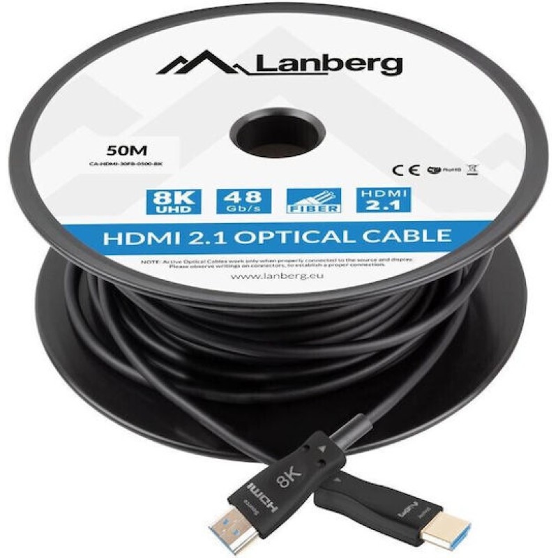 Lanberg HDMI 2.1 Cable HDMI male - HDMI male 50m Μαύρο (CA-HDMI-30FB-0500-BK)