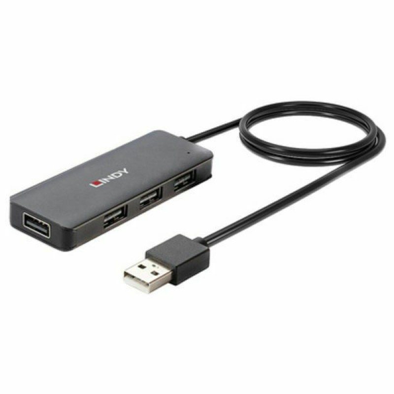 Lindy USB 2.0 Hub 4 Θυρών με σύνδεση USB-A Γκρι (42986)