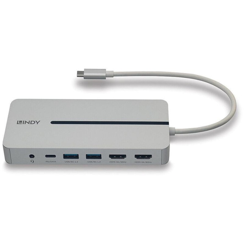 Lindy USB-C Docking Station με HDMI 4K PD Ethernet και συνδεση 2 Οθονών Γκρι (43360) (43360)
