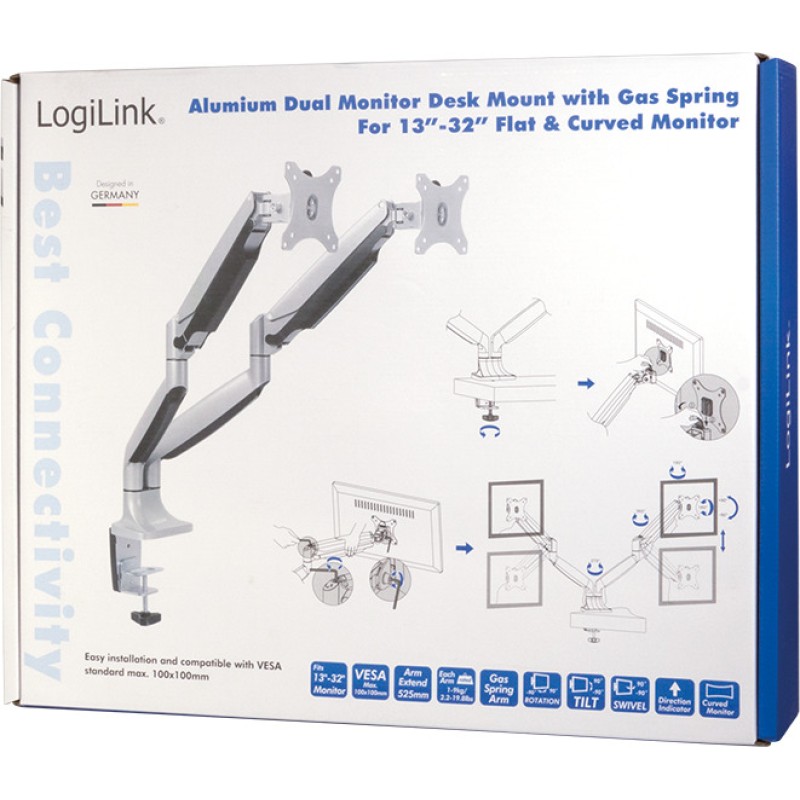 LogiLink Βάση Γραφείου για 2 Οθόνες έως 32" με Βραχίονα Ασημί (BP0043) (BP0043)
