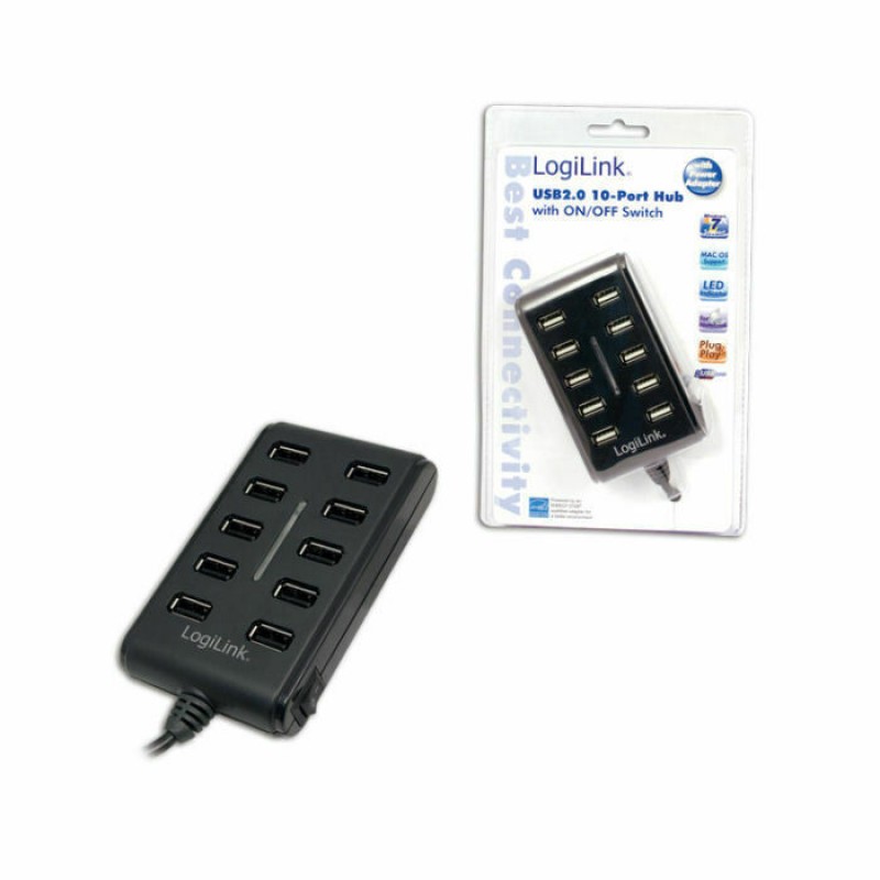 Τα προϊόντα που δεν αναγράφουν διαθέσιμο σημαίνει ότι δεν υπάρχουν άμεσα διαθέσιμα στο κατάστημα και θα παραληφθούν το αργότερο εντός των εργάσιμων ημερών που αναγράφεται στη διαθεσιμότητα. Σε κάθε περίπτωση η ημερομηνία μπορεί να μεταβληθεί και θα υπάρχει σχετική ενημέρωσή σας.Το USB hub της εταιρείας LogiLink διαθέτει 10 θύρες εξόδου USB 2.0, κατάλληλες για να συνδέσετε ταυτόχρονα στον υπολογιστή, συσκευές όπως ποντίκια, στικάκια, εξωτερικούς σκληρούς δίσκους, πληκτρολόγια και πολλά άλλα. Για να λειτουργήσει, συνδέστε το σε μια θύρα USB του υπολογιστή σας. Εναλλακτικά, μπορείτε να το χρησιμοποιήσετε κι ως φορτιστή για συσκευές, συνδέοντας το σε μια πρίζα ρεύματος στον τοίχο ή πολύπριζο.