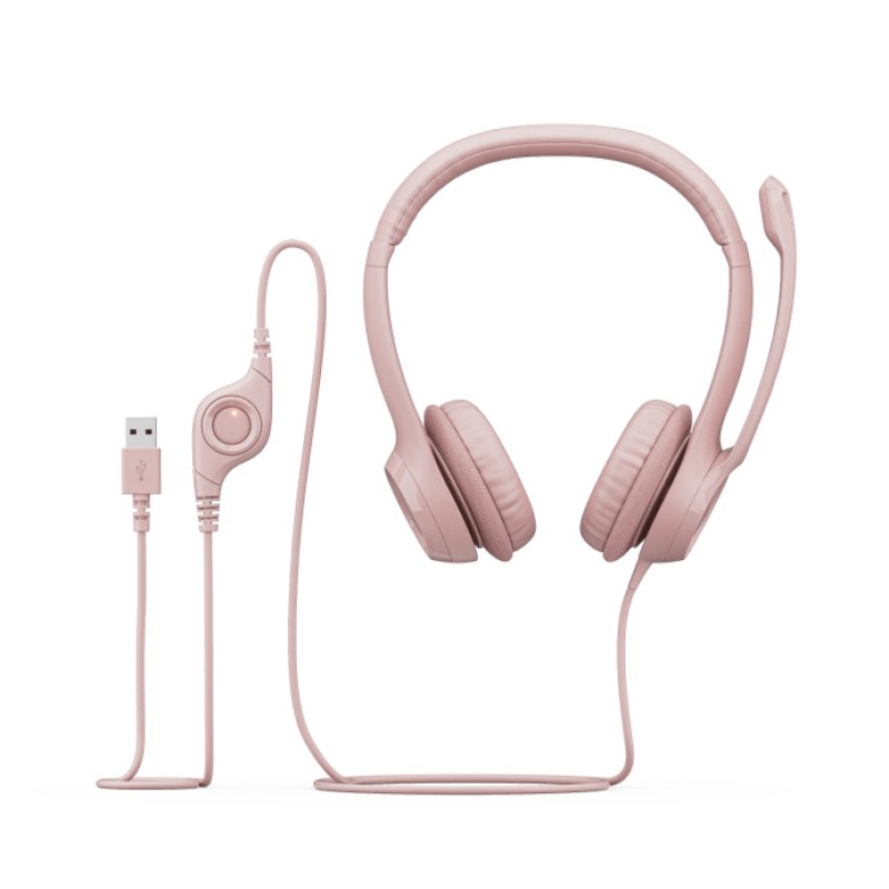 Logitech H390 On Ear Multimedia Ακουστικά με μικροφωνο και σύνδεση USB-A σε Ροζ χρώμα (981-001281)
