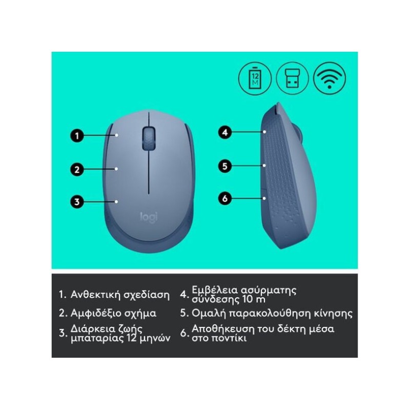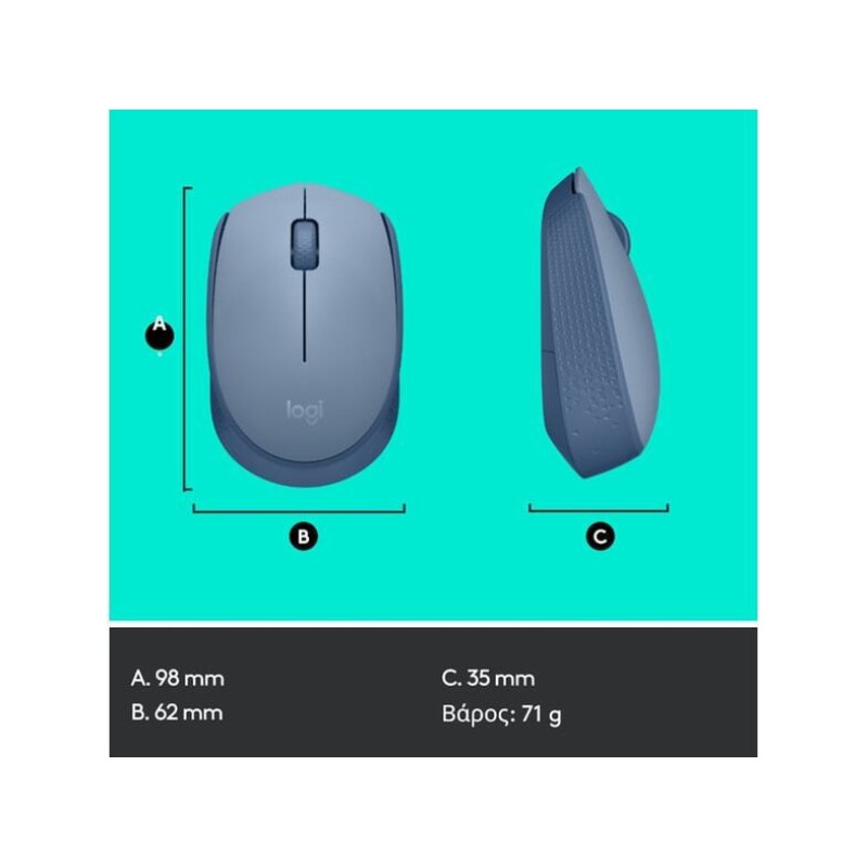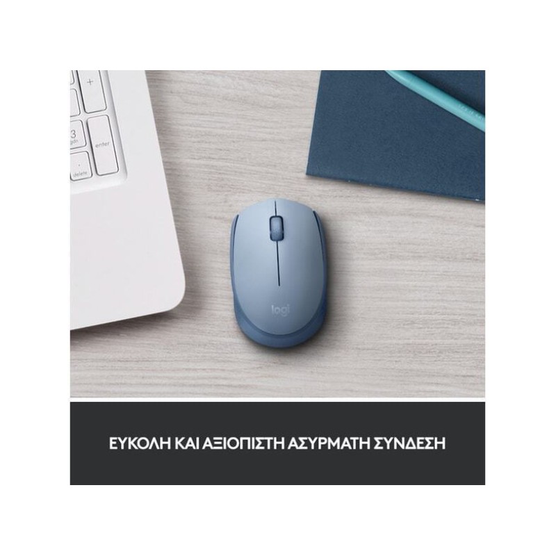 Το Logitech M171 είναι ένα ασύρματο mini ποντίκι, το οποίο συνδέεται στον υπολογιστή με dongle (πομποδέκτη) που τοποθετείται στη θύρα USB. Έχει οπτικό αισθητήρα που προσφέρει καλή ακρίβεια και το καθιστά ιδανικό για καθημερινή χρήση. Εφόσον χρησιμοποιηθεί σε γυαλιστερές επιφάνειες (πχ. γυάλινο γραφείο), είναι απαραίτητη η χρήση mousepad.