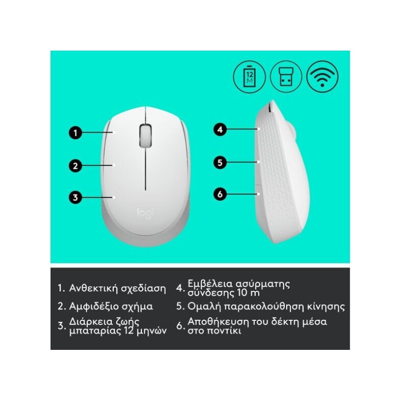 Τα προϊόντα που δεν αναγράφουν διαθέσιμο σημαίνει ότι δεν υπάρχουν άμεσα διαθέσιμα στο κατάστημα και θα παραληφθούν το αργότερο εντός των εργάσιμων ημερών που αναγράφεται στη διαθεσιμότητα. Σε κάθε περίπτωση η ημερομηνία μπορεί να μεταβληθεί και θα υπάρχει σχετική ενημέρωσή σας.Το Logitech M171 είναι ένα ασύρματο ποντίκι, το οποίο συνδέεται στον υπολογιστή με dongle (πομποδέκτη) που τοποθετείται στη θύρα USB. Έχει οπτικό αισθητήρα που προσφέρει καλή ακρίβεια και το καθιστά ιδανικό για καθημερινή χρήση. Εφόσον χρησιμοποιηθεί σε γυαλιστερές επιφάνειες (πχ. γυάλινο γραφείο), είναι απαραίτητη η χρήση mousepad.