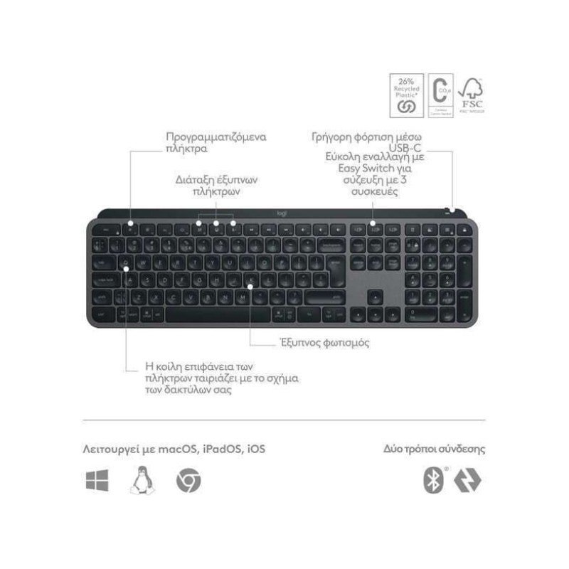 Τα προϊόντα που δεν αναγράφουν διαθέσιμο σημαίνει ότι δεν υπάρχουν άμεσα διαθέσιμα στο κατάστημα και θα παραληφθούν το αργότερο εντός των εργάσιμων ημερών που αναγράφεται στη διαθεσιμότητα. Σε κάθε περίπτωση η ημερομηνία μπορεί να μεταβληθεί και θα υπάρχει σχετική ενημέρωσή σας.Ασύρματο πληκτρολόγιο της εταιρείας Logitech. Μπορεί να συνδεθεί ασύρματα μέσω bluetooth ή μέσω του δέκτη που συνδέεται σε μια θύρα USB για την ασύρματη λειτουργία του.