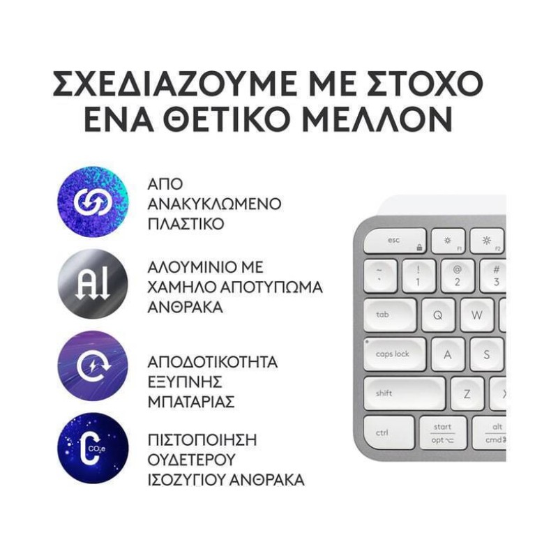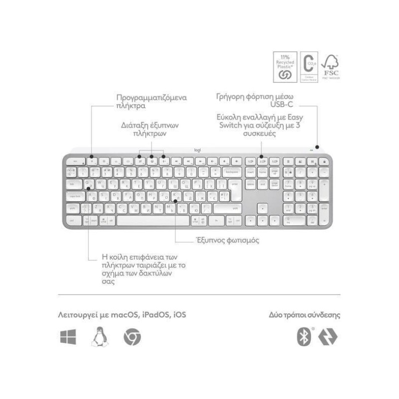 Logitech MX Keys S Ασύρματο Bluetooth Πληκτρολόγιο Αγγλικό US Pale Grey (920-011588)