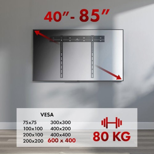 Maclean Energy MC-123 Βάση Τηλεόρασης Τοίχου έως 85" και 80kg (MC-123)