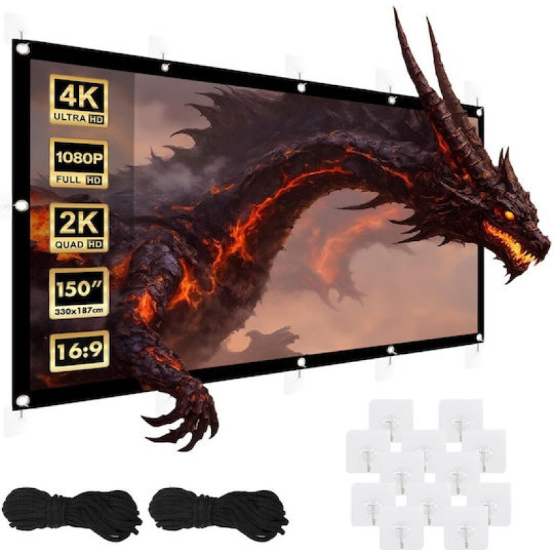 Η Maclean MC-167 είναι χειροκίνητη οθόνη 150″ (330×187 cm) σε αναλογία 16:9, με μαύρο πλαίσιο 25 mm για ενισχυμένη αντίθεση. Το ανθεκτικό, λείο ύφασμα διατηρείται χωρίς ζάρες. Περιλαμβάνονται 12 αυτοκόλλητοι γάντζοι και σχοινιά 5 m για εύκολη ανάρτηση. Γωνία θέασης 179°, κατάλληλη για home cinema, παρουσιάσεις ή εξωτερική χρήση.