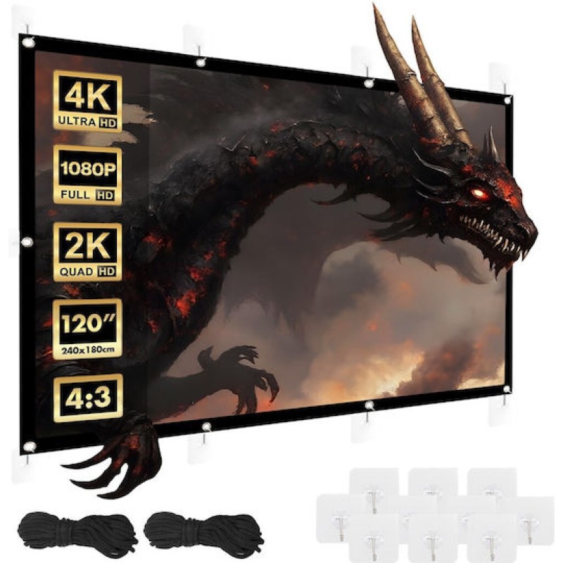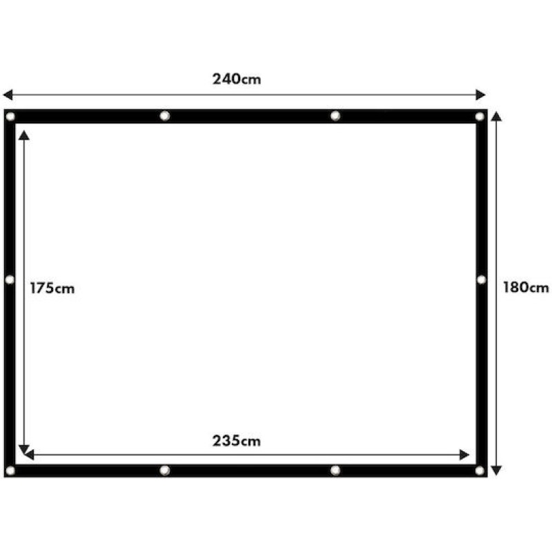 Η Maclean MC-169 είναι οθόνη προβολής 120″ (240×180 cm) με λόγο 4:3, μαύρο περίγραμμα 25 mm και γάντζους για εύκολη ανάρτηση. Προσφέρει λεία επιφάνεια και ευρεία γωνία θέασης, ιδανική για οικιακή ή επαγγελματική χρήση.