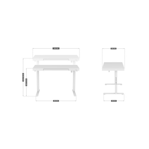 Εργονομικό ηλεκτρικό γραφείο με ρυθμιζόμενο ύψος επιφάνειας εργασίας Μεγάλο εύρος ρύθμισης: ύψος επιφάνειας εργασίας από 72 έως 118 cm Πίνακας ελέγχου με 3 θέσεις μνήμης Θύρα USB και USB C Ενσωματωμένο ράφι στην επιφάνεια εργασίας Δύο θήκες, για ακουστικά και σακίδιο ή τσάντα Διαστάσεις επιφάνειας εργασίας: 120 cm x 60 cm