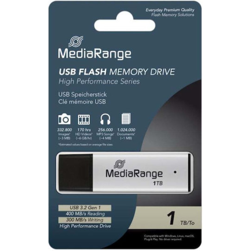 MediaRange 1.0TB USB 3.2 Stick με σύνδεση USB-Α Ασημί (MR1905-1)