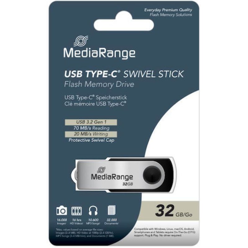 USB 3.2 Gen 1 Υψηλή Απόδοση: Προσφέρει αξιόπιστη απόδοση με ταχύτητες ανάγνωσης έως 70 MB/s και ταχύτητα εγγραφής έως 20 MB/s, κάνοντάς το ιδανικό για γρήγορη πρόσβαση, μεταφορά και αποθήκευση αρχείων.