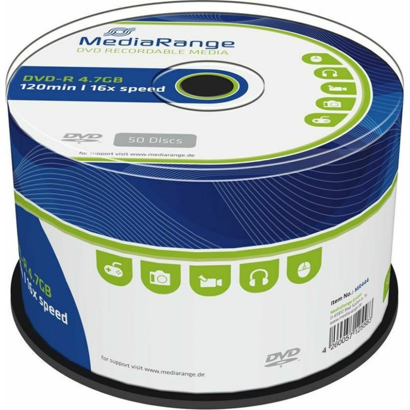 MediaRange Εγγράψιμα DVD-R 16x 4.7GB Cake Box 50τμχ (MR444)