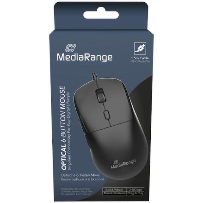 MediaRange Ενσύρματο Εργονομικό Vertical Ποντίκι Μαύρο (MROS271)