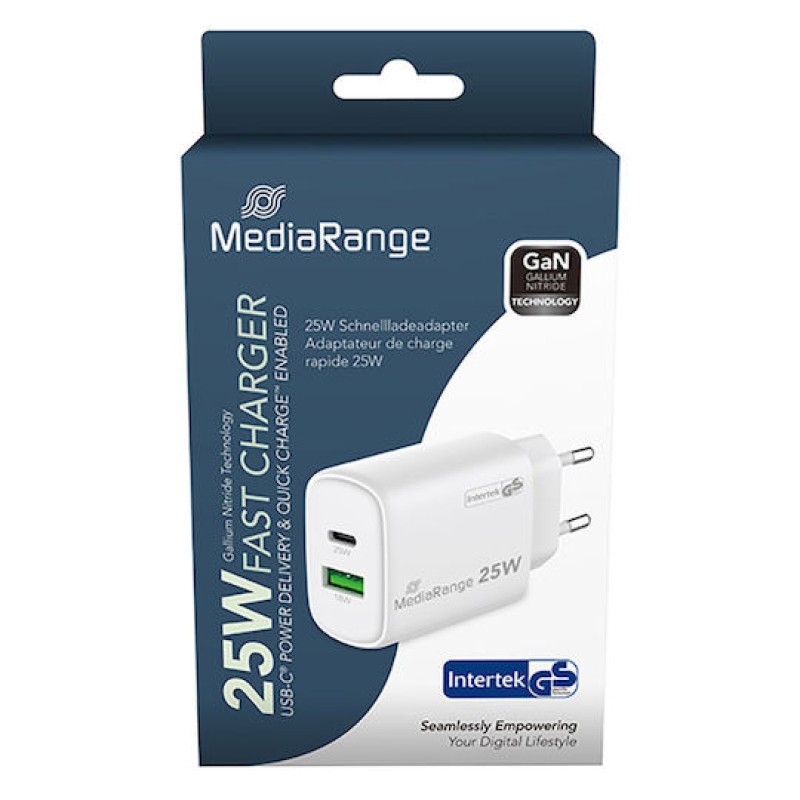 Συμπαγείς διαστάσεις: Με διαστάσεις 84.5 x 41.8 x 26.8mm και βάρος 54g, ο αντάπτορας φόρτισης MediaRange 25W είναι σχεδιασμένος να είναι compact και ελαφρύς, καθιστώντας τον ιδανικό σύντροφο ταξιδιού.
