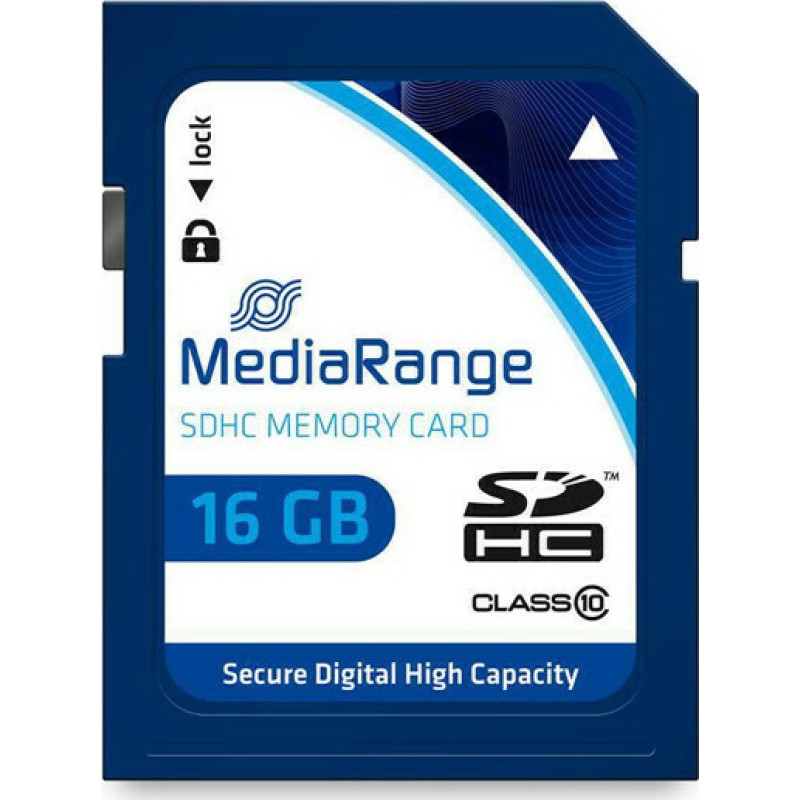 SDHC κάρτα μνήμης της εταιρίας MediaRange. Διαθέτει χωρητικότητα 16GB. Το μέγεθος αυτό απευθύνεται κυρίως στον μέσο χρήστη που θα χρειαστεί να αποθηκεύσει αρκετό όγκο φωτογραφιών, Video και εφαρμογών στην κινητή του συσκευή, με περιορισμένες απαιτήσεις όμως στο κομμάτι της αποθήκευσης μεγάλου αριθμού Video ποιότητας 4K ή για αποθήκευση πολλών φωτογραφιών υπερυψηλής ανάλυσης.