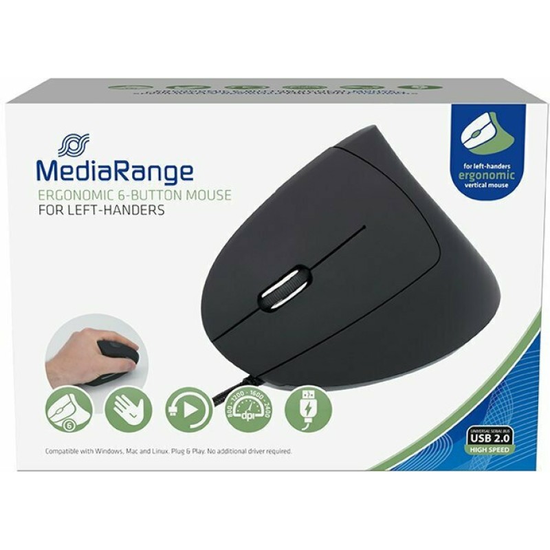 MediaRange MROS231 Ενσύρματο Εργονομικό Vertical Ποντίκι για Αριστερόχειρες Μαύρο (MROS231)