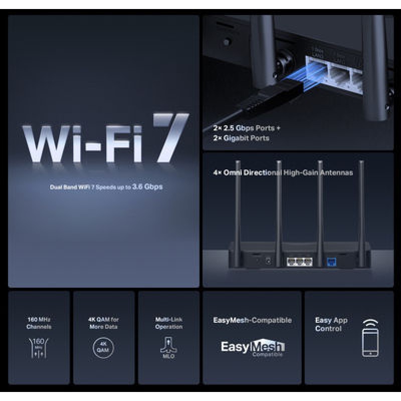 Mercusys MR27BE Ασύρματο Router Wi‑Fi 7 Dual-Band (MR27BE)