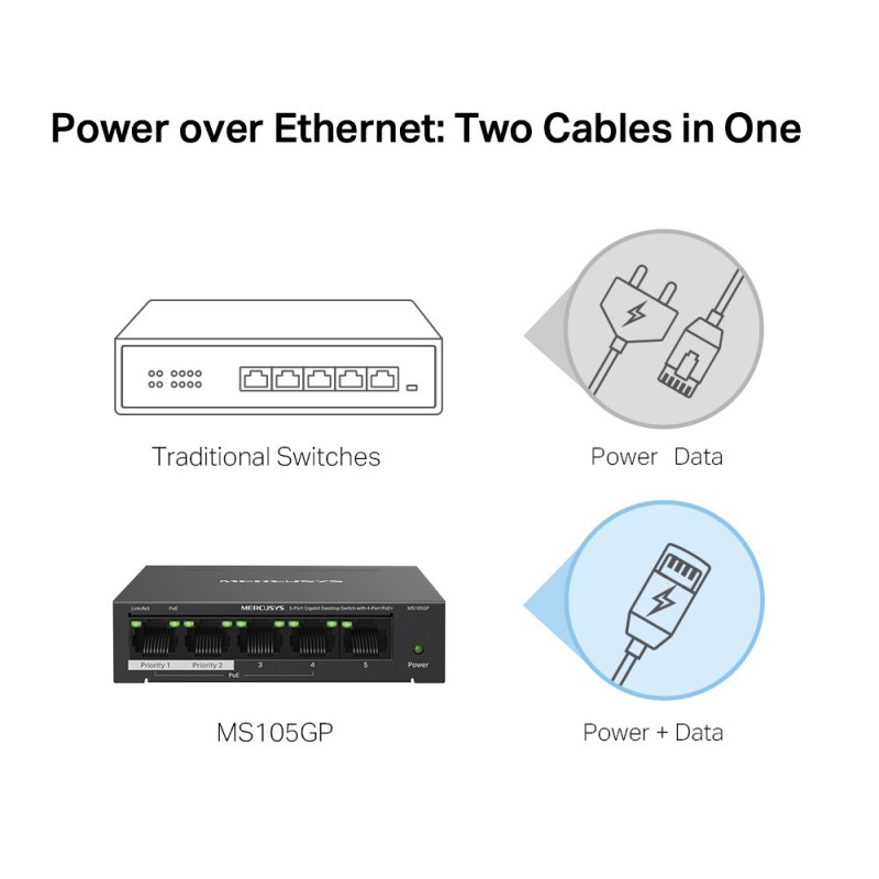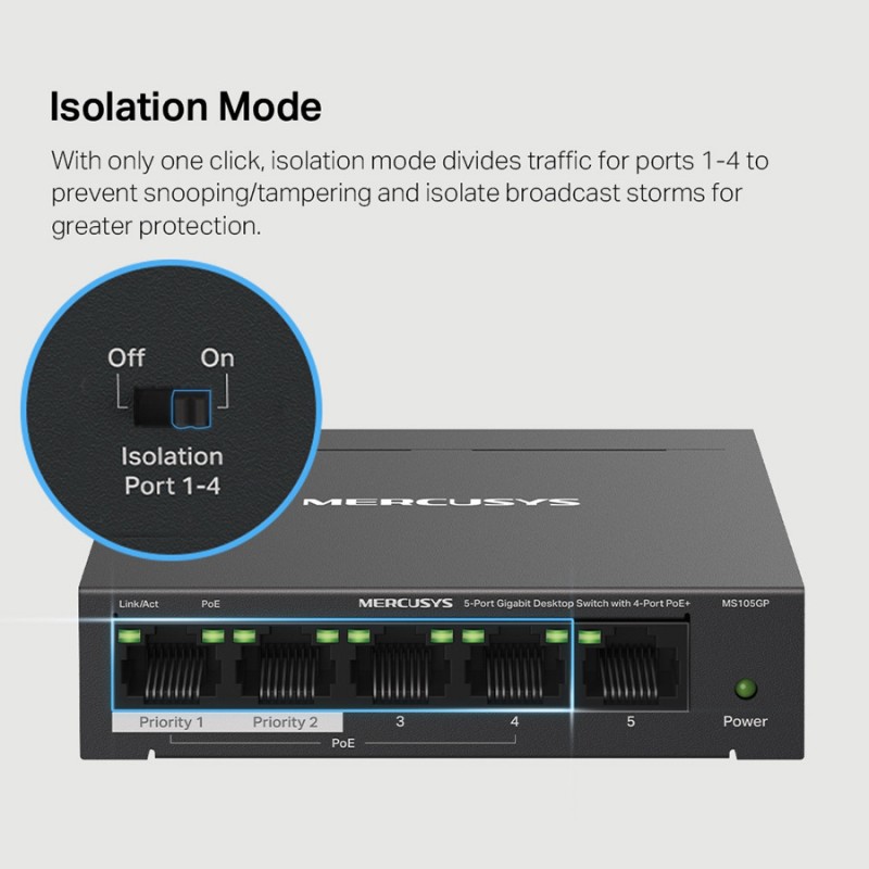 Mercusys MS105GP v1 Unmanaged L2 5-Port Gigabit PoE+ Switch (MS105GP)