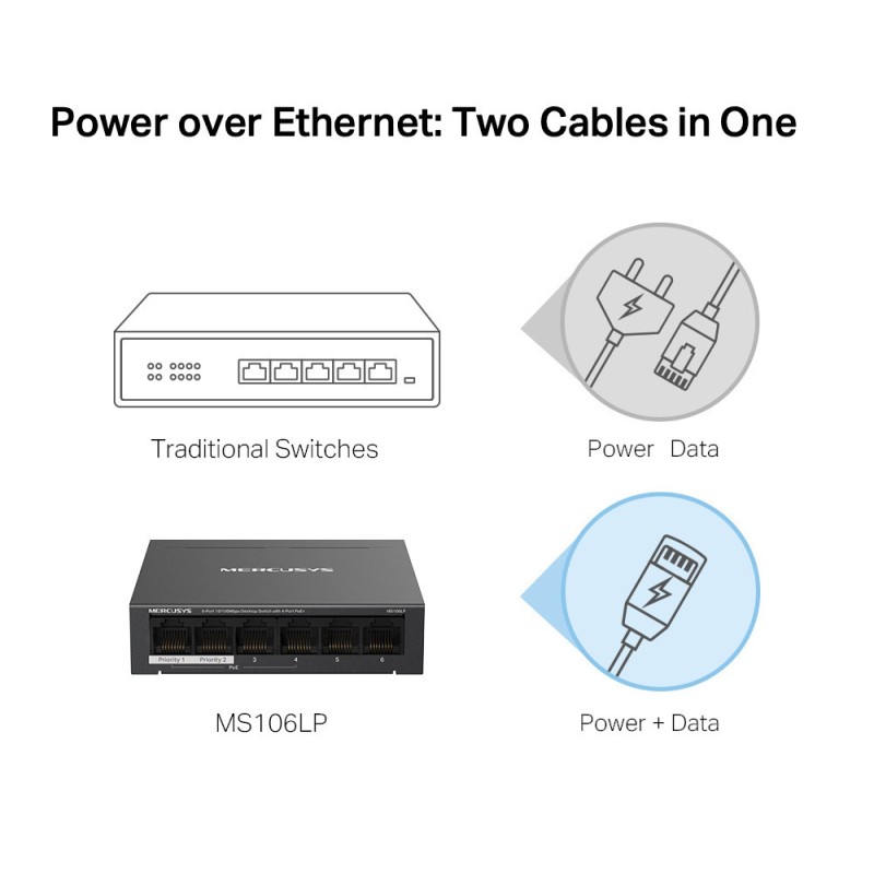 Mercusys MS106LP v1 Unmanaged L2 PoE+ Switch με 6 Θύρες Ethernet (MS106LP)