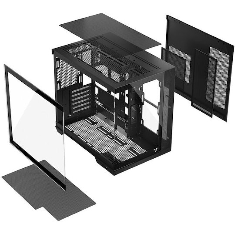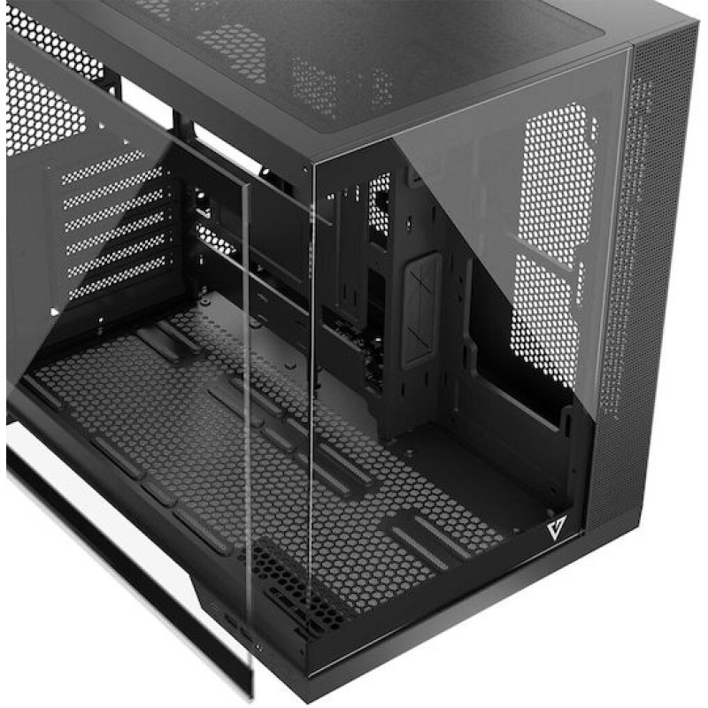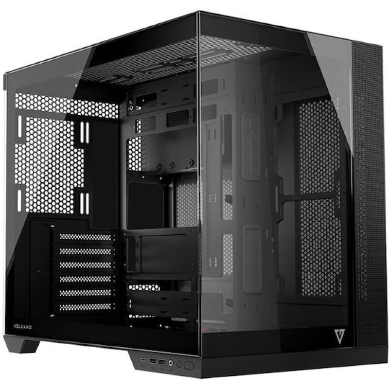 Το μοντέλο Volcano Panorama αποτελεί μέρος των τελευταίων τάσεων στην προβολή των εγκατεστημένων εξαρτημάτων. Ένα πάνελ με tempered glass δεν είναι αρκετό - εδώ έχουμε προετοιμάσει τη δυνατότητα πλήρους προβολής του υπολογιστή. Η κάρτα γραφικών, οι μονάδες μνήμης RAM, η ψύξη της CPU, είναι κρίμα όλα να κρύβονται. Εάν στήνετε έναν υπολογιστή με προσεκτικά επιλεγμένα εξαρτήματα, γνωρίζουμε πόσο σημαντικό είναι για εσάς να μπορείτε να τα αναδεικνύετε. Επιλέγοντας το Volcano Panorama αποκτάτε άφθονο χώρο στα εξαρτήματα - μεγάλες κάρτες γραφικών και αποδοτική ψύξη του επεξεργαστή, σύνδεση USB-C και δύο USB 3.0 και κατασκευή δύο chambers, όπου το κάθετα τοποθετημένο τροφοδοτικό διαχωρίζεται από το υπόλοιπο. Όλα περικλείονται σε δύο γυάλινα πάνελ για το καλύτερο αποτέλεσμα.