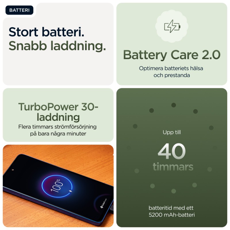 | Μπαταρία | 5200 mAh, TurboPower 30 (Γρήγορη φόρτιση 30 W), χωρίς ασύρματη φόρτιση |