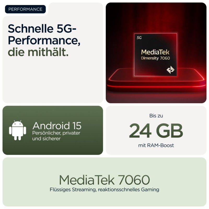| Επεξεργαστής | MediaTek Dimensity 7060, 8 πυρήνες, 2,6 GHz |