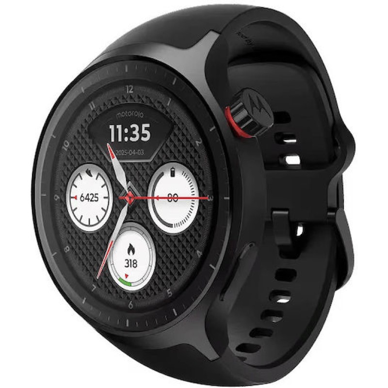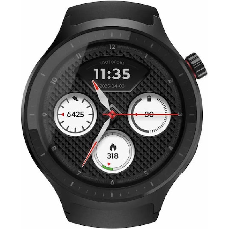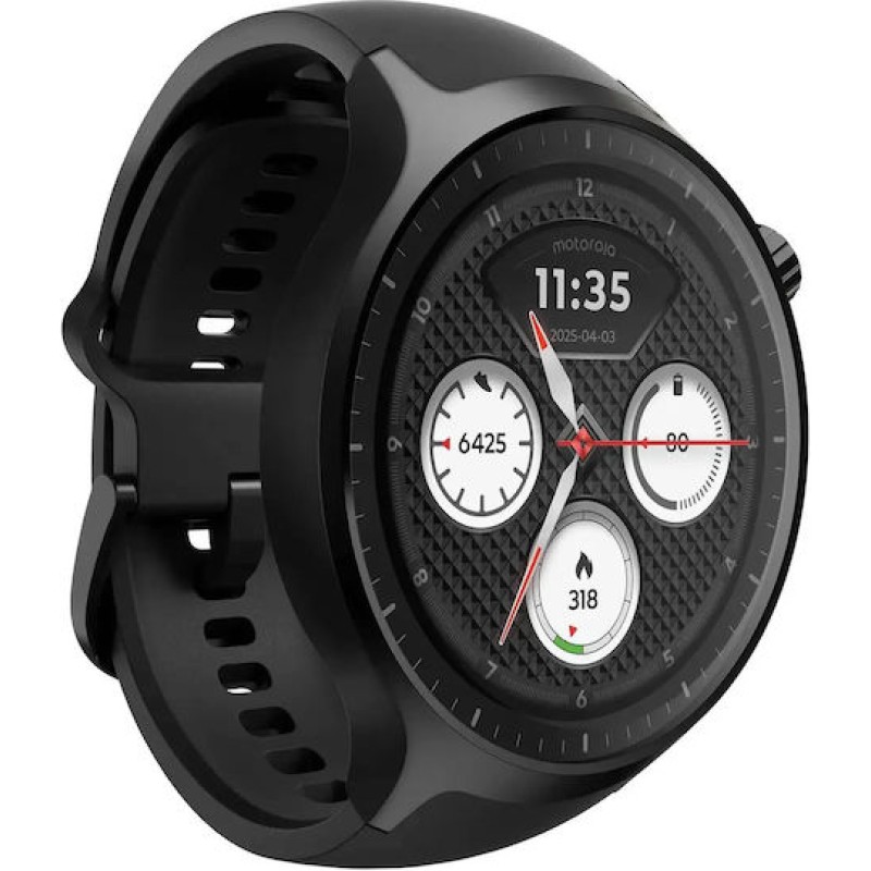 Το moto watch της Motorola συνδυάζει κλασική σχεδίαση με σύγχρονες δυνατότητες, διαθέτοντας κομψό αλουμινένιο πλαίσιο 47 mm και επιλογές προσαρμογής με λουράκια 22 mm. Με τεχνολογία Powered by Polar, προσφέρει αξιόπιστη παρακολούθηση υγείας και ευεξίας, όπως μέτρηση καρδιακών παλμών, οξυγόνου, άγχους, ύπνου, δραστηριότητας και GPS διπλής συχνότητας. Υποστηρίζει ειδοποιήσεις σε πραγματικό χρόνο, υπενθυμίσεις για υγιεινές συνήθειες και λειτουργίες όπως κλήσεις handsfree και έλεγχο συσκευών. Διαθέτει φωτεινή οθόνη OLED 1,43", ανθεκτικότητα με Gorilla Glass 3 και πιστοποίηση IP68, καθώς και μεγάλη διάρκεια μπαταρίας για καθημερινή χρήση. Προσφέρει επίσης εξατομίκευση μέσω εφαρμογής και προσαρμόσιμα watch faces για στυλ και λειτουργικότητα.