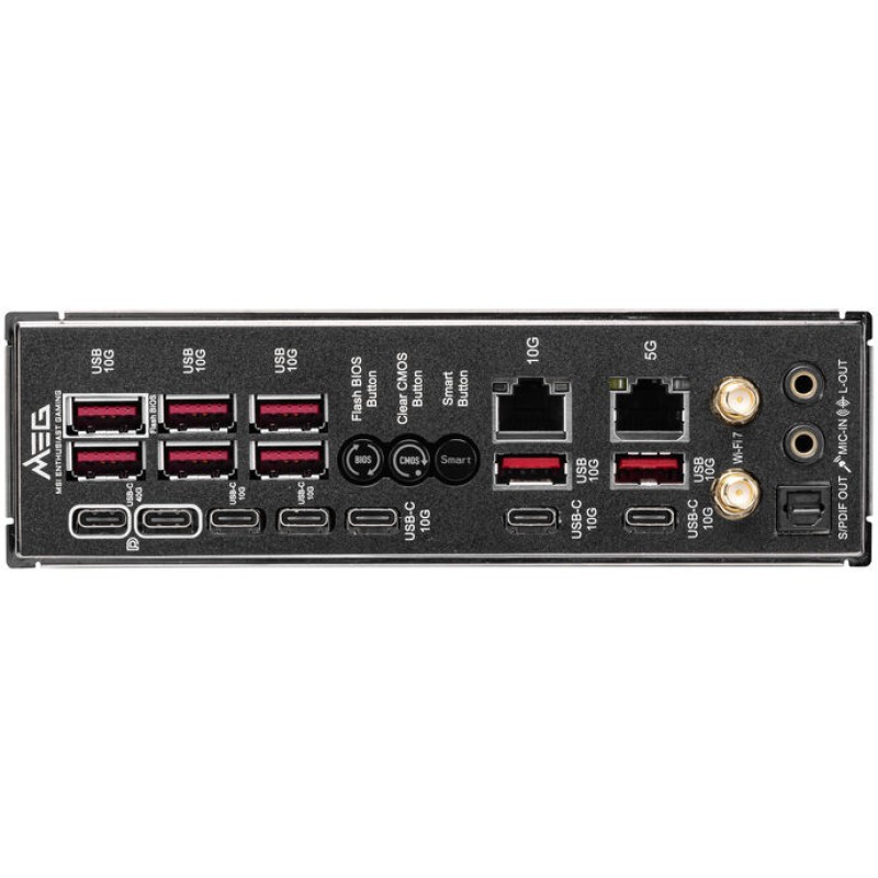 | Ειδικά Χαρακτηριστικά | 24+2+1 Phase Power Design, MSI Audio Boost 5, MSI AI Engine, Mystic Light, Frozr AI Cooling, Super Charger, LAN Manager, M.2 Shield FROZR, EZ M.2 Clip II, Clear CMOS Button, Flash BIOS Button, Pre-mounted I/O Shield, Smart Button, Debug LED, 2oz Copper PCB, Lightning Gen5 Solution, Steel Armor II, Water Pump Header, OC Engine, SMT |