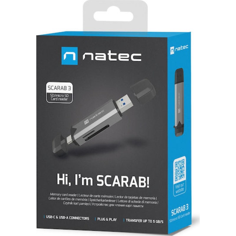 Natec Card Reader USB 3.1 Type-C για SD Γκρι (NCZ-2262)