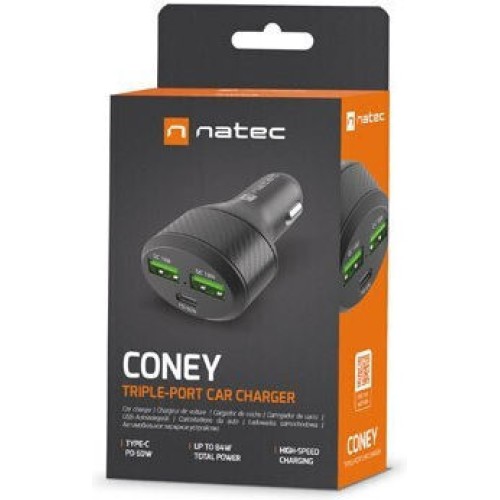 Natec Φορτιστής Αυτοκινήτου 48W 3A Γρήγορης Φόρτισης με Θύρες: 2xUSB Μαύρος (NUC-1981)