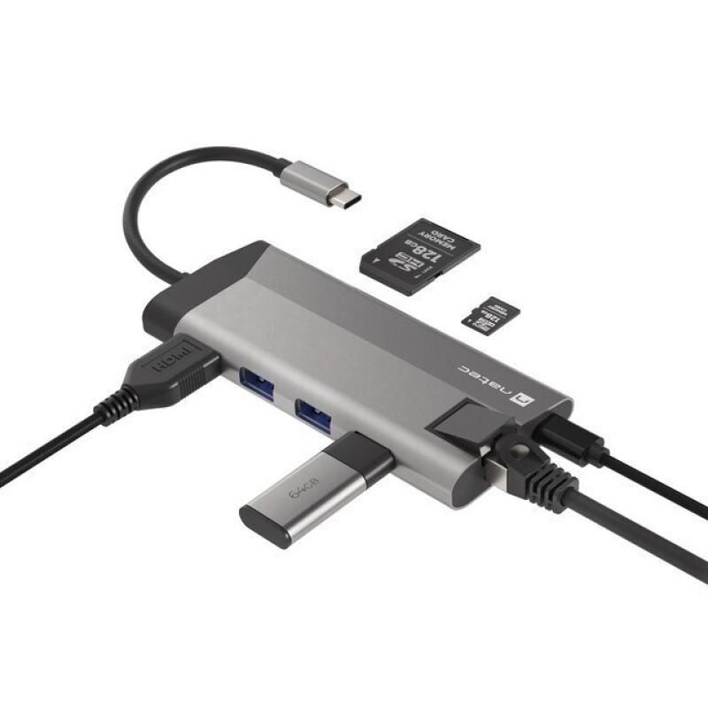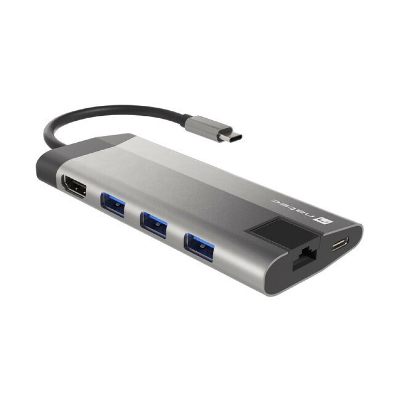 Station της εταιρίας Natec που συνδέεται σε Laptop με θύρα USB-C.