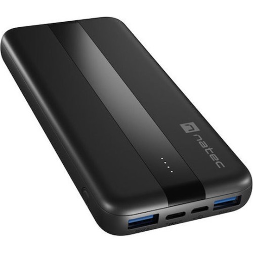 Natec Trevi Slim Q V2 Power Bank 10000mAh 18W με 2 Θύρες USB-A και 2 Θύρες USB-C Power Delivery Μαύρο (NPB-2294)