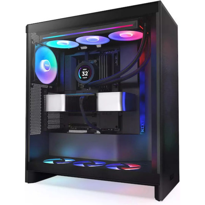 Τα προϊόντα που δεν αναγράφουν διαθέσιμο σημαίνει ότι δεν υπάρχουν άμεσα διαθέσιμα στο κατάστημα και θα παραληφθούν το αργότερο εντός των εργάσιμων ημερών που αναγράφεται στη διαθεσιμότητα. Σε κάθε περίπτωση η ημερομηνία μπορεί να μεταβληθεί και θα υπάρχει σχετική ενημέρωσή σας.Το NZXT H7 Flow RGB είναι ένα mid-tower κουτί υπολογιστή που συνδυάζει μοντέρνο σχεδιασμό με εξαιρετική απόδοση ψύξης και εντυπωσιακό φωτισμό RGB. Διαθέτει διάφανο πλαϊνό πάνελ από tempered glass, επιτρέποντας την προβολή των εσωτερικών εξαρτημάτων και του φωτισμού. Η πρόσοψη του κουτιού διαθέτει πλέγμα υψηλής απόδοσης που επιτρέπει εξαιρετική ροή αέρα, ενώ οι πλευρικές επιφάνειες από tempered glass προσφέρουν καθαρή θέα στο εσωτερικό. Στο εσωτερικό, το H7 Flow RGB υποστηρίζει μητρικές πλακέτες τύπου E-ATX (έως 277 mm), ATX, Micro-ATX και Mini-ITX. Μπορεί να φιλοξενήσει κάρτες γραφικών μήκους έως 410 mm, ψύκτρες επεξεργαστή ύψους έως 185 mm και τροφοδοτικά μήκους έως 200 mm. Η διαχείριση καλωδίων είναι εύκολη χάρη στους ευρύχωρους χώρους και τα ενσωματωμένα συστήματα δέσμευσης. Η πρόσοψη διαθέτει θύρες USB 3.2 Gen 2x2 Type-C, USB 3.2 Gen 1 Type-A και ακουστική υποδοχή, προσφέροντας σύγχρονη συνδεσιμότητα. Το κουτί είναι κατασκευασμένο από ατσάλι και πλαστικό, με πλευρικό πάνελ από tempered glass και ηχομονωτικό ατσάλι στην άλλη πλευρά.
