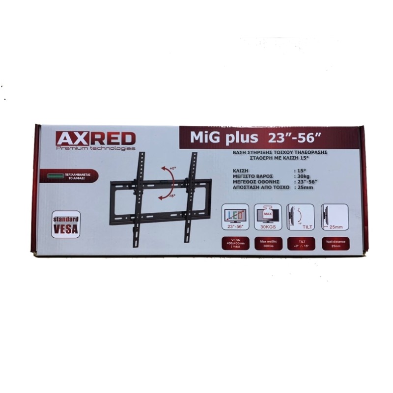 Τα προϊόντα που δεν αναγράφουν διαθέσιμο σημαίνει ότι δεν υπάρχουν άμεσα διαθέσιμα στο κατάστημα και θα παραληφθούν το αργότερο εντός των εργάσιμων ημερών που αναγράφεται στη διαθεσιμότητα. Σε κάθε περίπτωση η ημερομηνία μπορεί να μεταβληθεί και θα υπάρχει σχετική ενημέρωσή σας.Η βάση τοίχου της Opticum μπορεί να χρησιμοποιηθεί για την τοποθέτηση τόσο μικρών τηλεοράσεων (από 23 Ίντσες), όσο και μεγαλύτερων, συγκεκριμένα μέχρι και 56 Ιντσών. Για το βίδωμα της τηλεόρασης υπάρχουν υποδοχές τύπου Vesa 400x400. Η δυνατότητα για κλίση σας επιτρέπει να την προσαρμόζετε πάνω - κάτω όπως θέλετε.