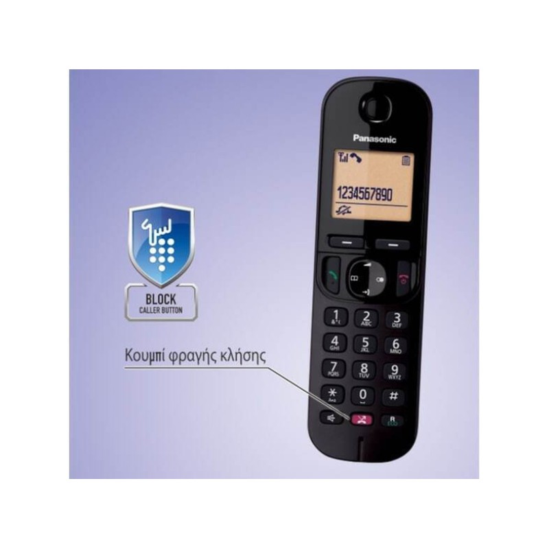 Τα προϊόντα που δεν αναγράφουν διαθέσιμο σημαίνει ότι δεν υπάρχουν άμεσα διαθέσιμα στο κατάστημα και θα παραληφθούν το αργότερο εντός των εργάσιμων ημερών που αναγράφεται στη διαθεσιμότητα. Σε κάθε περίπτωση η ημερομηνία μπορεί να μεταβληθεί και θα υπάρχει σχετική ενημέρωσή σας.Ασύρματο Τηλέφωνο Panasonic με φωτιζόμενη οθόνη 1,6'', αναγνώριση κλήσης, τηλεφωνικό κατάλογο 50 ονομάτων, φραγή 30 ανεπιθύμητων εισερχομένων κλήσεων μεταξύ των οποίων και η απόρρητη κλήση, 9 μνήμες ταχείας κλήσεως και λειτουργία ECO.