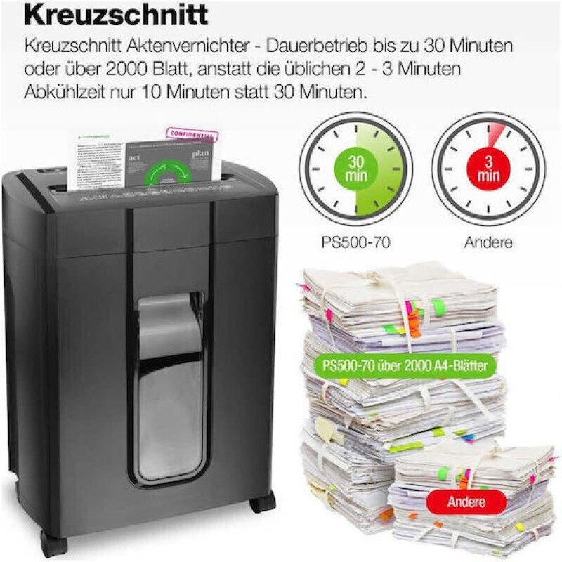 Καταστροφέας εγγράφων για συνεχή λειτουργία έως και 30 λεπτά ή πάνω από 2000 φύλλα, αντί για τα συνηθισμένα 2-3 λεπτά.