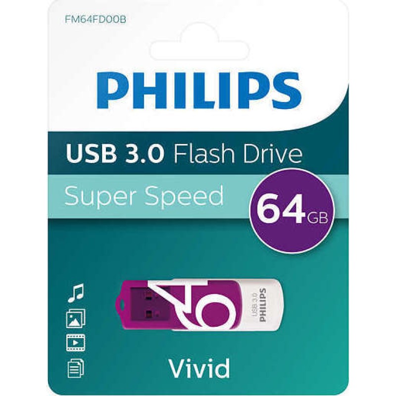 Philips Vivid 64GB USB 3.0 Stick Μωβ (FM64FD00B/00)