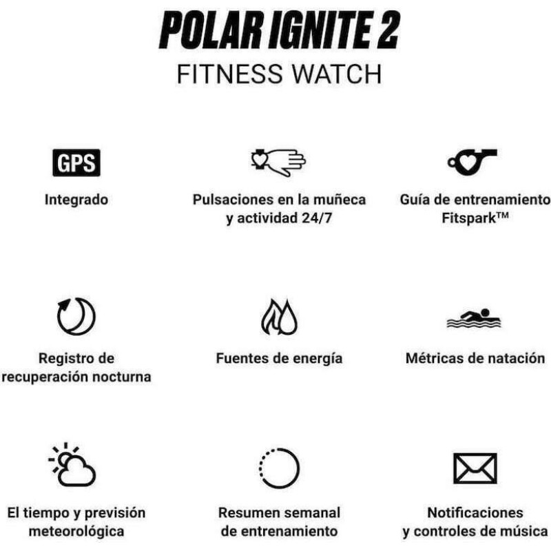 Το Polar Ignite 2 είναι ένα smartwatch με οθόνη αφής που μπορεί να συνδεθεί με κινητό (smartphone) Android ή iOS. Απευθύνεται κυρίως σε όσους ενδιαφέρονται για ένα smartwatch με πολλές λειτουργίες και δυνατότητες για την παρακολούθηση της υγείας και της φυσικής τους κατάστασης. Μπορεί να χρησιμοποιηθεί για κολύμβηση στη θάλασσα και μεταξύ των δυνατοτήτων του ξεχωρίζουν το GPS, η καταγραφή βημάτων και απόστασης και ο ενσωματωμένος μετρητής καρδιακών παλμών.