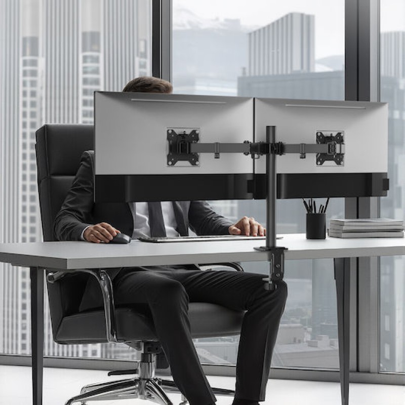 Powertech Βάση Γραφείου για 2 Οθόνες έως 32" με Βραχίονα (PT-1552) (PT-1552)