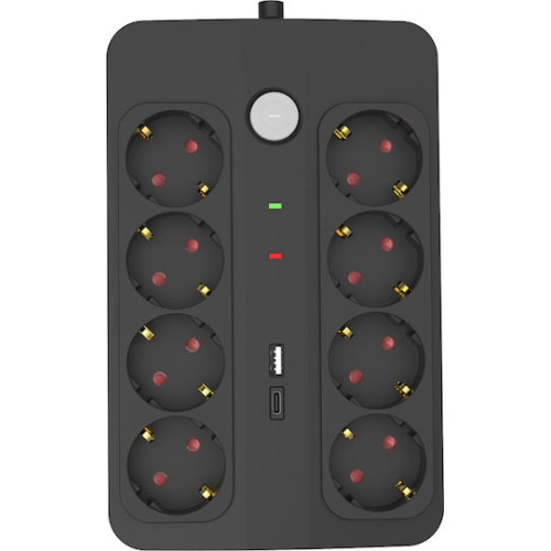 Powertech Πολύπριζο 8 Θέσεων με USB-A, USB-C, Διακόπτη και Καλώδιο 1.5m (PT-1535)