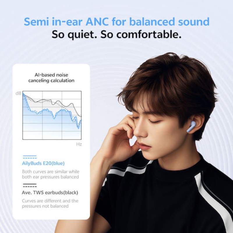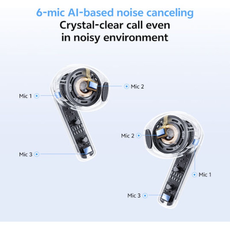 QCY AilyBuds E20 Hybrid ANC TWS Bluetooth Ακουστικά Clear Blue (QCY-HT13 CLEAR BLUE)