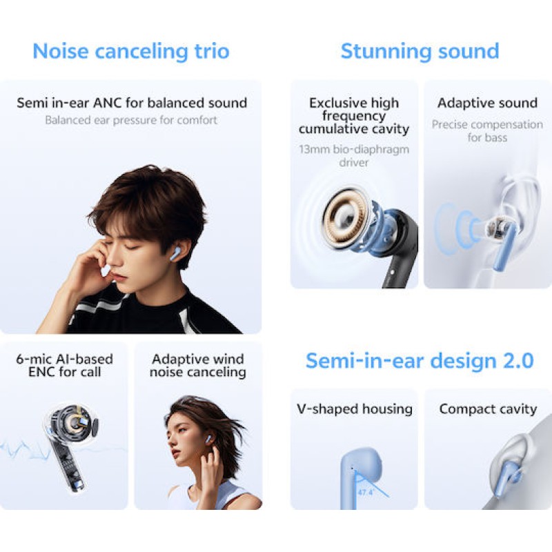 • 6 Mics & AI Call Noise Reduction Technology: Λαμβάνει με ακρίβεια τη φωνή σας, ενώ μειώνει αποτελεσματικά το θόρυβο περιβάλλοντος για κρυστάλλινες κλήσεις.