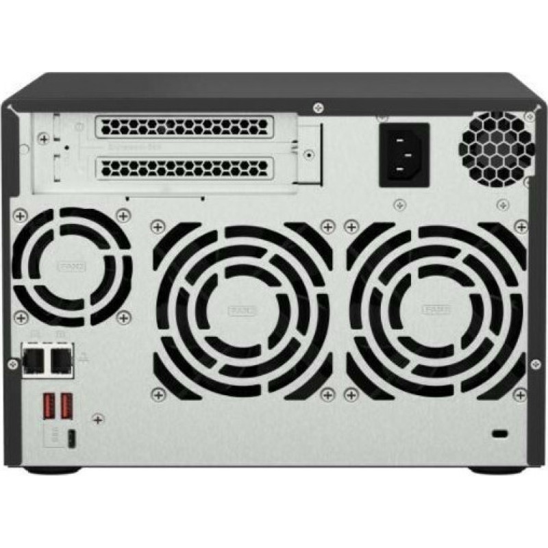NAS της εταιρίας QNap. Το συγκεκριμένο μοντέλο απαρτίζεται απο τον επεξεργαστή AMD V1500B με 8GB RAM DDR4. Ενσωματώνει επιπλέον θύρες όπως USB για να συνδέσετε συσκευές όπως εκτυπωτές, USB Stick κ.α και HDMI για τη σύνδεση απευθείας σε οθόνη ή τηλεόραση. Επίσης ενσωματώνει 2 θύρες Ethernet. Οι επιπλέον θύρες Ethernet χρησιμεύουν κυρίως στην μεγαλύτερη ταχύτητα μεταφοράς ή στην απλή εφεδρεία. Δεν διαθέτει ενσωματωμένους σκληρούς δίσκους κάτι που σημαίνει οτι θα πρέπει να προσθέσετε δικούς σας. Υποστηρίζει μέχρι και 6 μονάδες δίσκων HDD, SSD.
